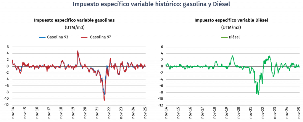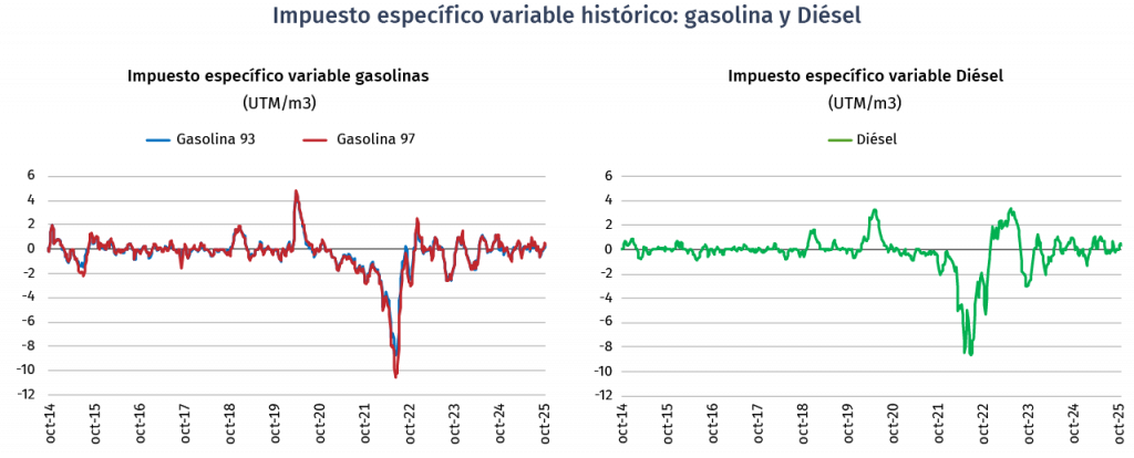 El componente variable sumado al componente base definido en la ley N° 18.502, permite obtener los valores del impuesto específico final de cada combustible incluido en MEPCO. A partir del 11 de diciembre de 2022 comienzan a regir las modificaciones introducidas por la ley N° 20.794 y el Decreto Supremo N° 1.790 que modifica su reglamento. Estas modificaciones permiten definir un impuesto específico variable diferenciado para las gasolinas según su octanaje. Además, desde el 24 de enero de 2023 comienzan a regir las modificaciones introducidas por la Ley N° 21.537 que modifica el MEPCO para evitar fluctuaciones semanales.