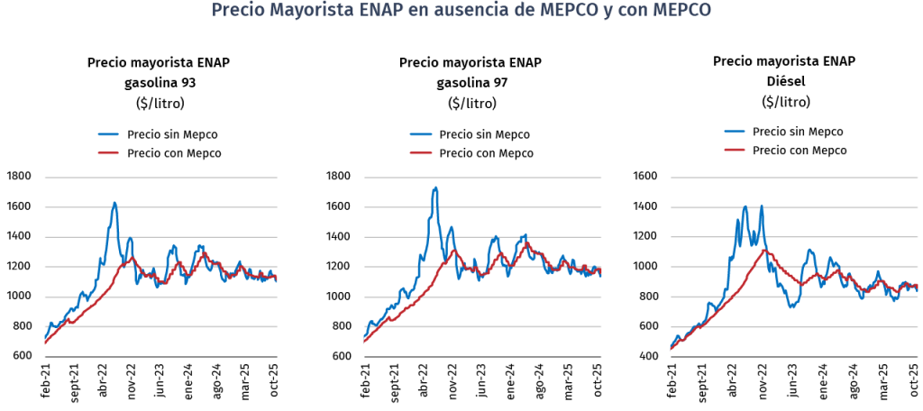 El MEPCO fue creado por la ley Nº 20.765 publicada el 09 de julio del 2014, con la finalidad de establecer un mecanismo de estabilización de los precios de venta internos de la gasolina automotriz, del petróleo diésel, del gas licuado de petróleo y del gas natural comprimido, ambos, estos últimos, de consumo vehicular. Dicho mecanismo opera a través de incrementos y rebajas a los impuestos específicos a los combustibles establecidos en la ley N° 18.502, según lo establecido en el Decreto Supremo Nº 1.119, de 2014, del Ministerio de Hacienda, que aprueba reglamento para la aplicación del MEPCO.