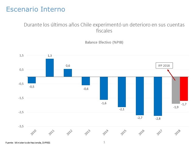 Rodrigo Cerda explicó que las proyecciones entregadas hoy son consistentes con el objetivo del Gobierno del reducir el déficit estructural en 0,2% anual lo que implica cerrar este año en 1,8% del PIB y llegar a un déficit estructural de 1% hacia 2022.